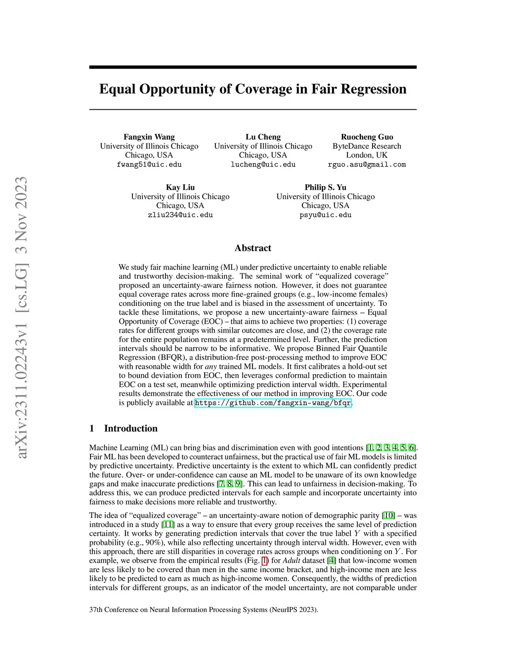 Equal Opportunity of Coverage in Fair Regression