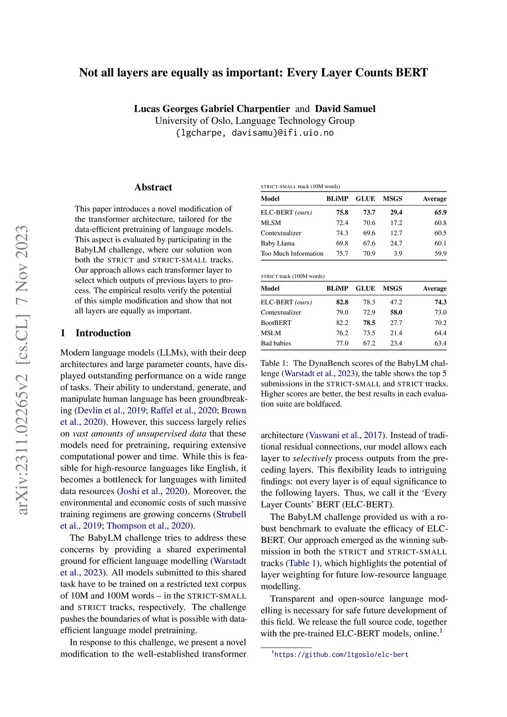 Not all layers are equally as important: Every Layer Counts BERT