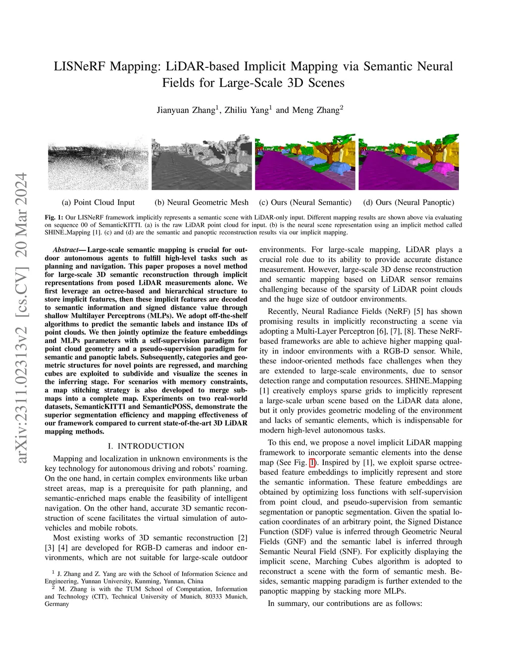 LISNeRF Mapping: LiDAR-based Implicit Mapping via Semantic Neural Fields