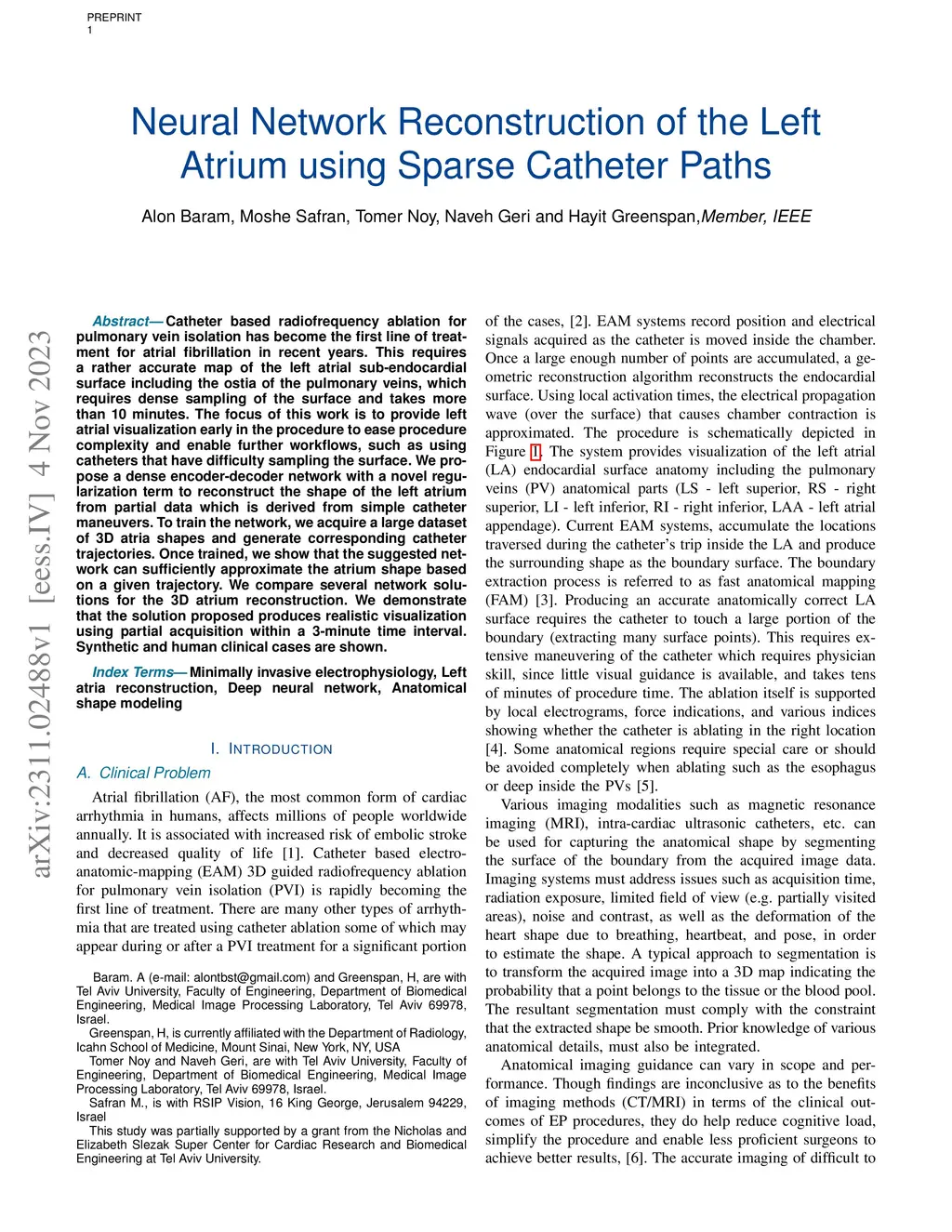 Neural Network Reconstruction of the Left Atrium using Sparse Catheter