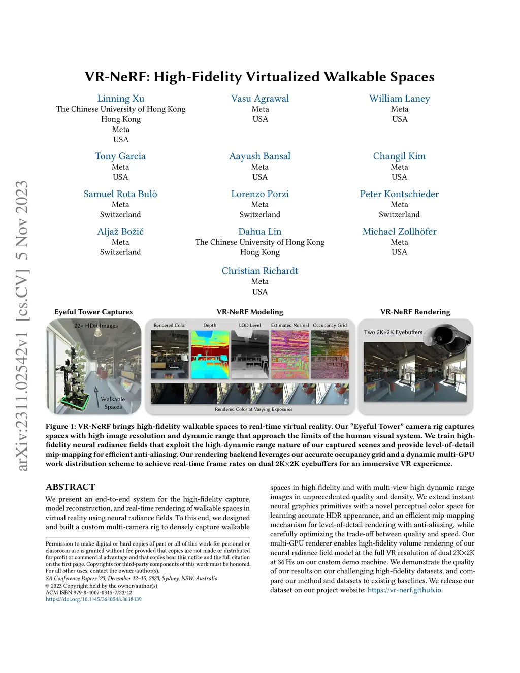 VR-NeRF: High-Fidelity Virtualized Walkable Spaces
