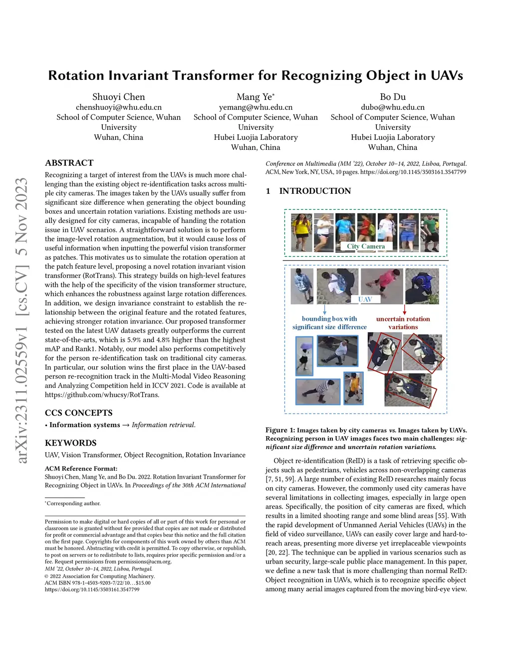 Rotation Invariant Transformer for Recognizing Object in UAVs