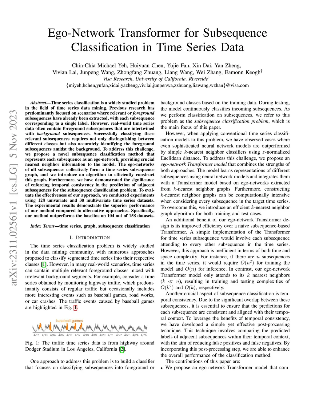 Ego-Network Transformer for Subsequence Classification in Time Series