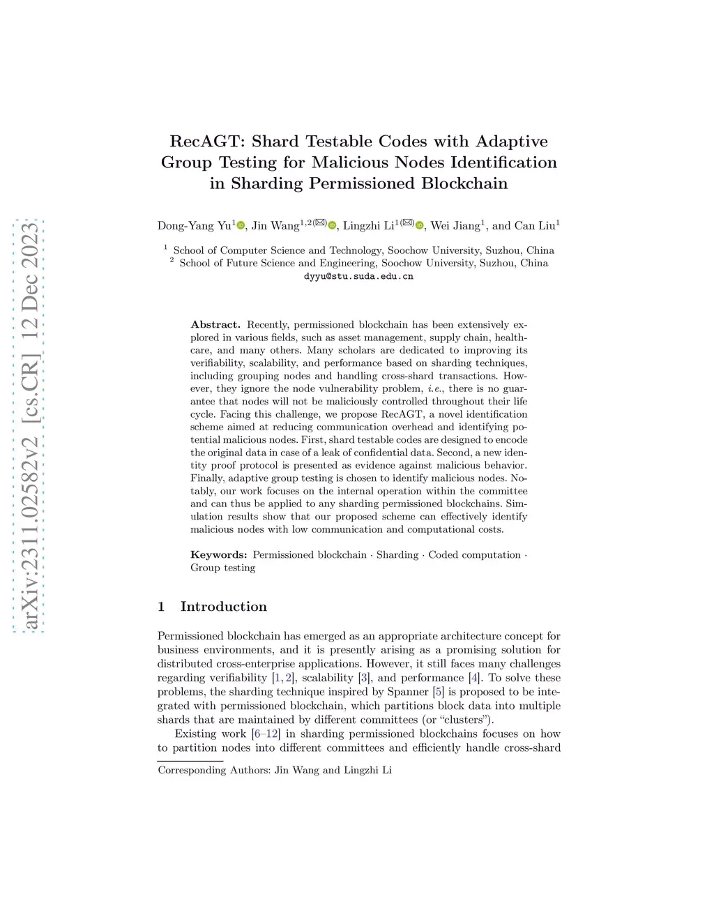 RecAGT: Shard Testable Codes with Adaptive Group Testing for Malicious