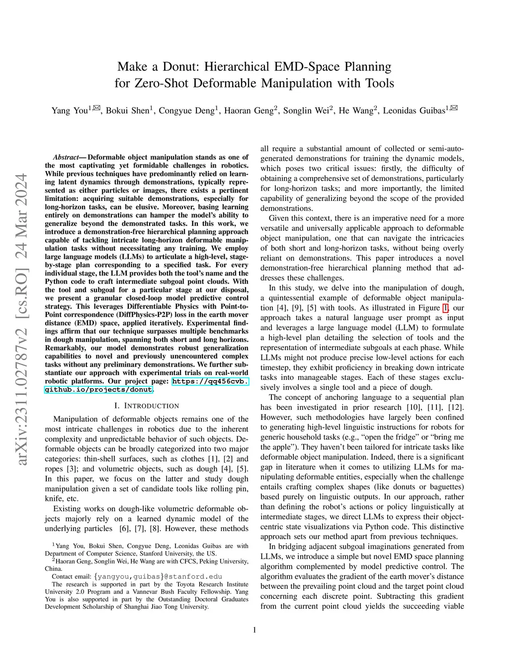 Make a Donut: Hierarchical EMD-Space Planning for Zero-Shot Deformable Manipulation with Tools
