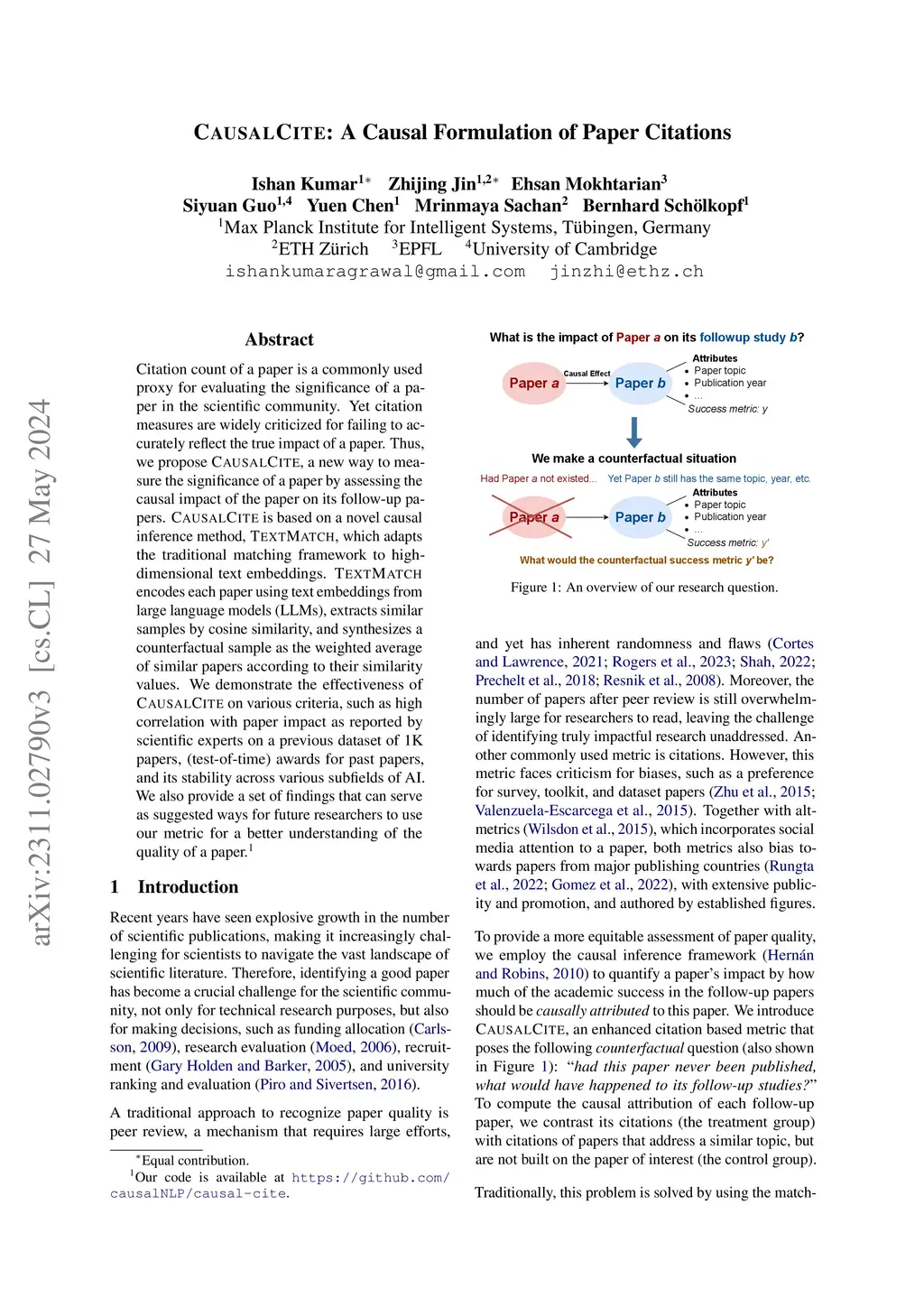 CausalCite: A Causal Formulation of Paper Citations