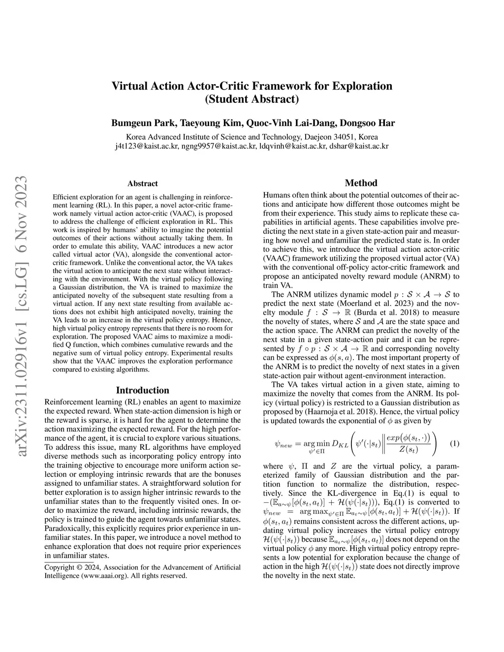 Virtual Action Actor-Critic Framework for Exploration (Student Abstract)