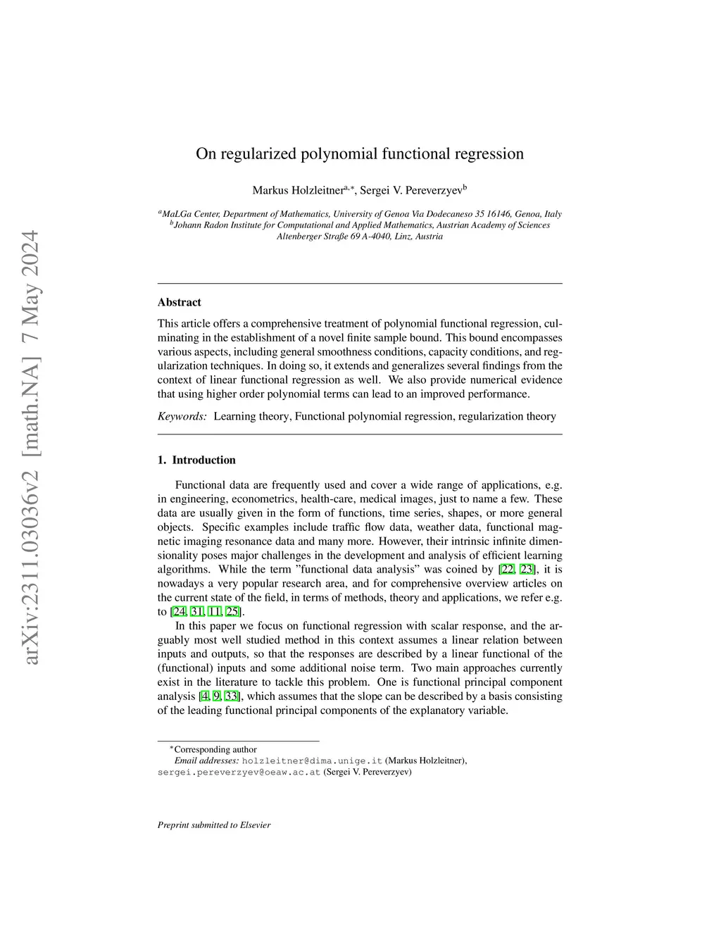 This article offers a comprehensive treatment of polynomial functional regression, culminating in the establishment of a novel finite sample bound. This bound encompasses various aspects, including general smoothness conditions, capacity conditions, and regularization techniques. In doing so, it extends and generalizes several findings from the context of linear functional regression as well. We also provide numerical evidence that using higher order polynomial terms can lead to an improved performance.