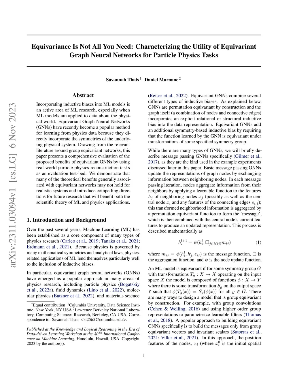 Incorporating inductive biases into ML models is an active area of ML research, especially when ML models are applied to data about the physical world. Equivariant Graph Neural Networks (GNNs) have recently become a popular method for learning from physics data because they directly incorporate the symmetries of the underlying physical system. Drawing from the relevant literature around group equivariant networks, this paper presents a comprehensive evaluation of the proposed benefits of equivariant GNNs by using real-world particle physics reconstruction tasks as an evaluation test-bed. We demonstrate that many of the theoretical benefits generally associated with equivariant networks may not hold for realistic systems and introduce compelling directions for future research that will benefit both the scientific theory of ML and physics applications.