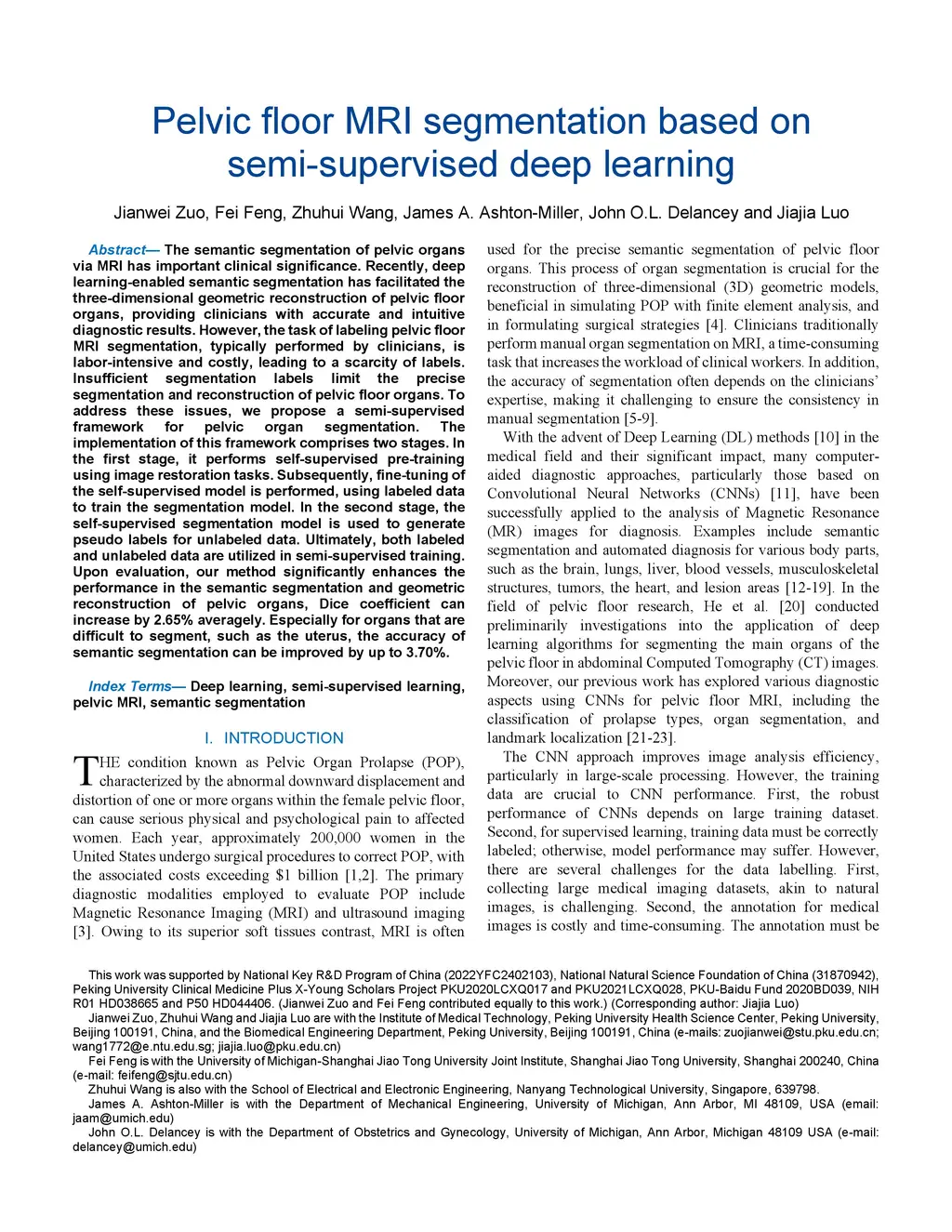 Pelvic floor MRI segmentation based on semi-supervised deep learning