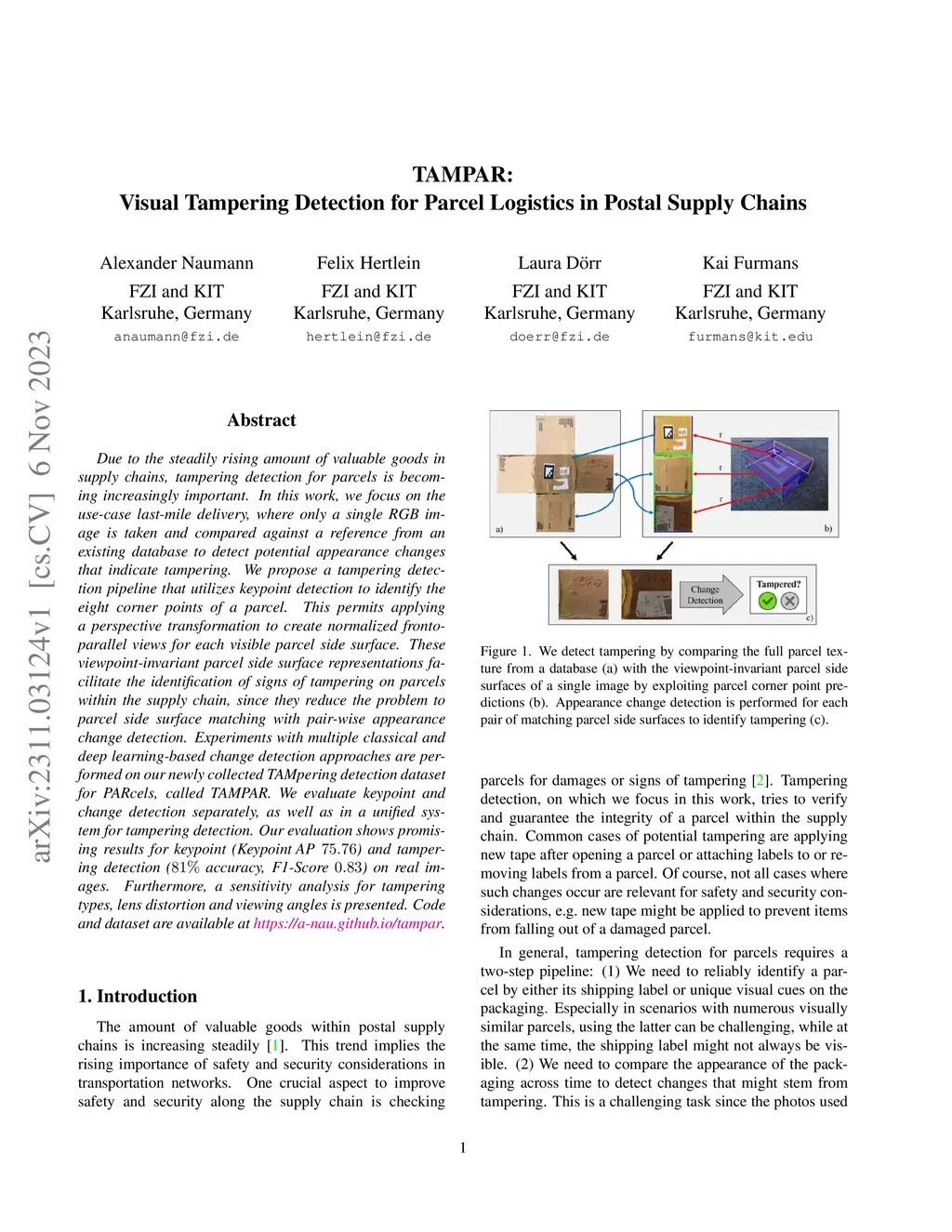 TAMPAR: Visual Tampering Detection for Parcel Logistics in Postal Supply
