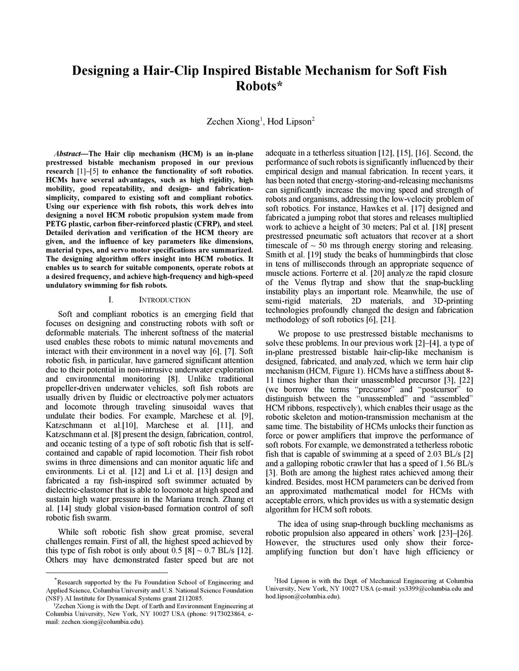 Designing a Hair-Clip Inspired Bistable Mechanism for Soft Fish Robots