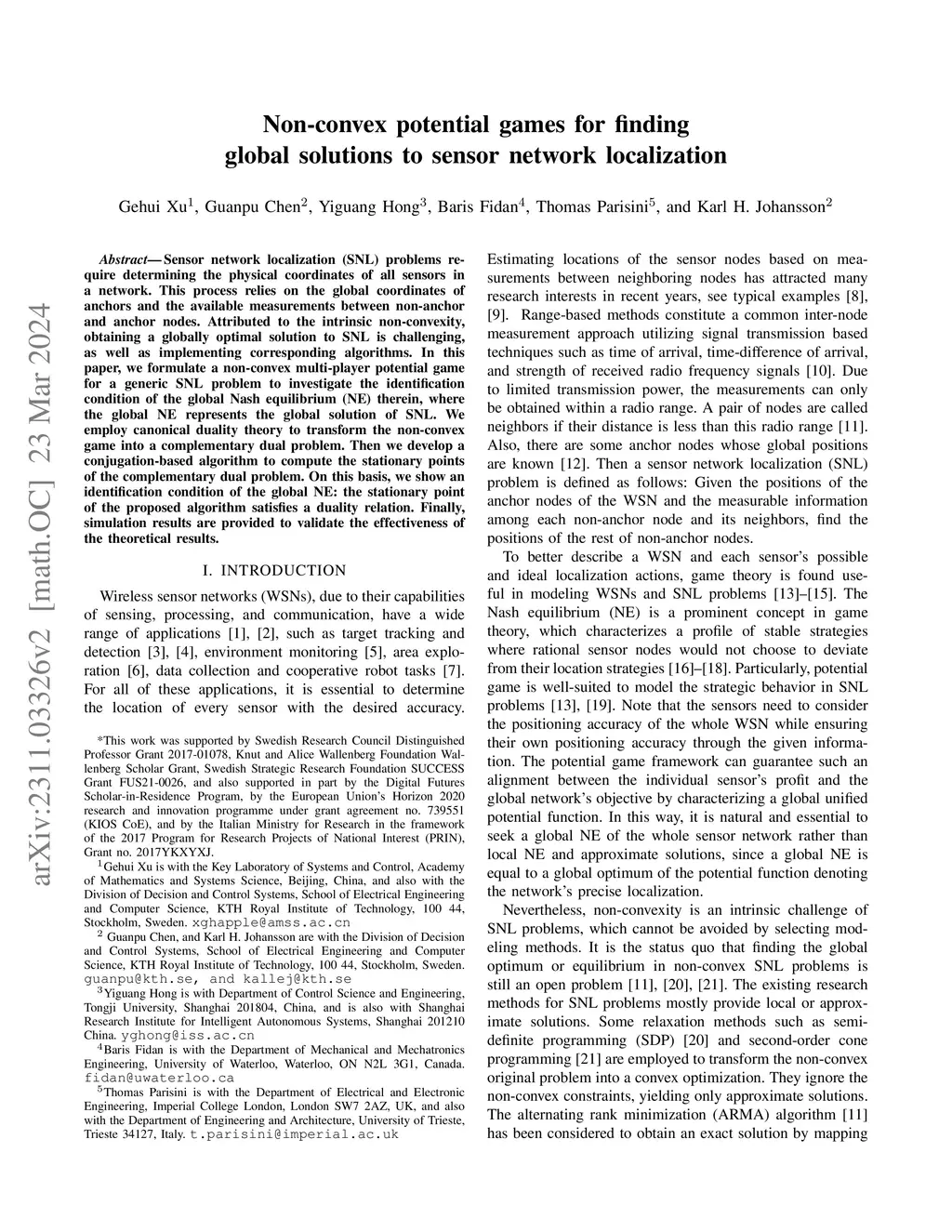 Non-convex potential games for finding global solutions to sensor
