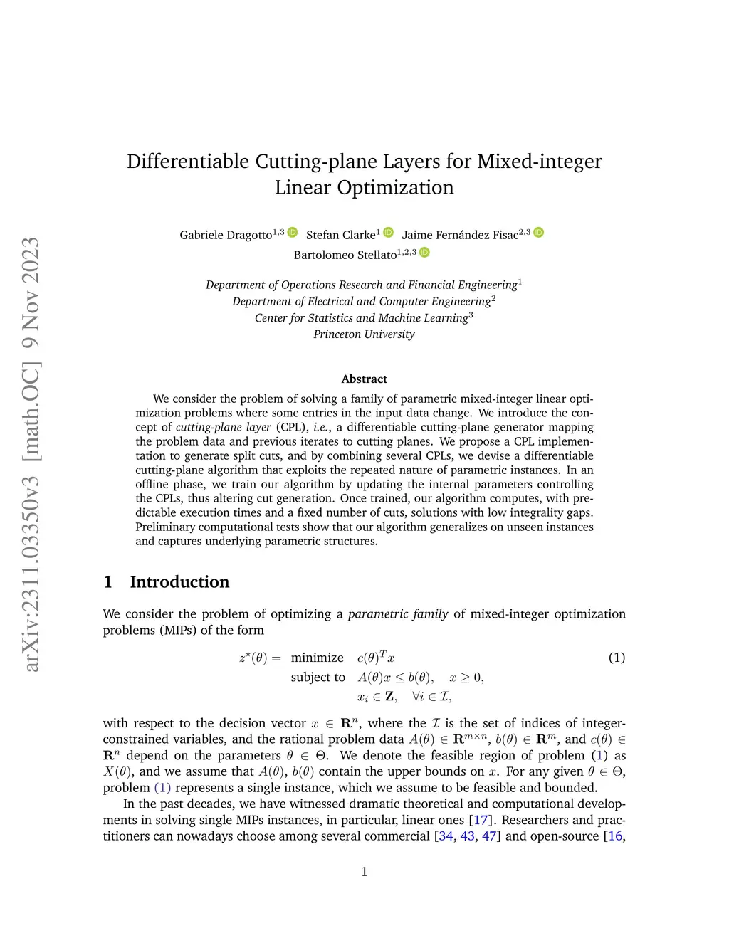 We consider the problem of solving a family of parametric mixed-integer linear optimization problems where some entries in the input data change. We introduce the concept of cutting-plane layer (CPL), i.e., a differentiable cutting-plane generator mapping the problem data and previous iterates to cutting planes. We propose a CPL implementation to generate split cuts, and by combining several CPLs, we devise a differentiable cutting-plane algorithm that exploits the repeated nature of parametric instances. In an offline phase, we train our algorithm by updating the internal parameters controlling the CPLs, thus altering cut generation. Once trained, our algorithm computes, with predictable execution times and a fixed number of cuts, solutions with low integrality gaps. Preliminary computational tests show that our algorithm generalizes on unseen instances and captures underlying parametric structures.