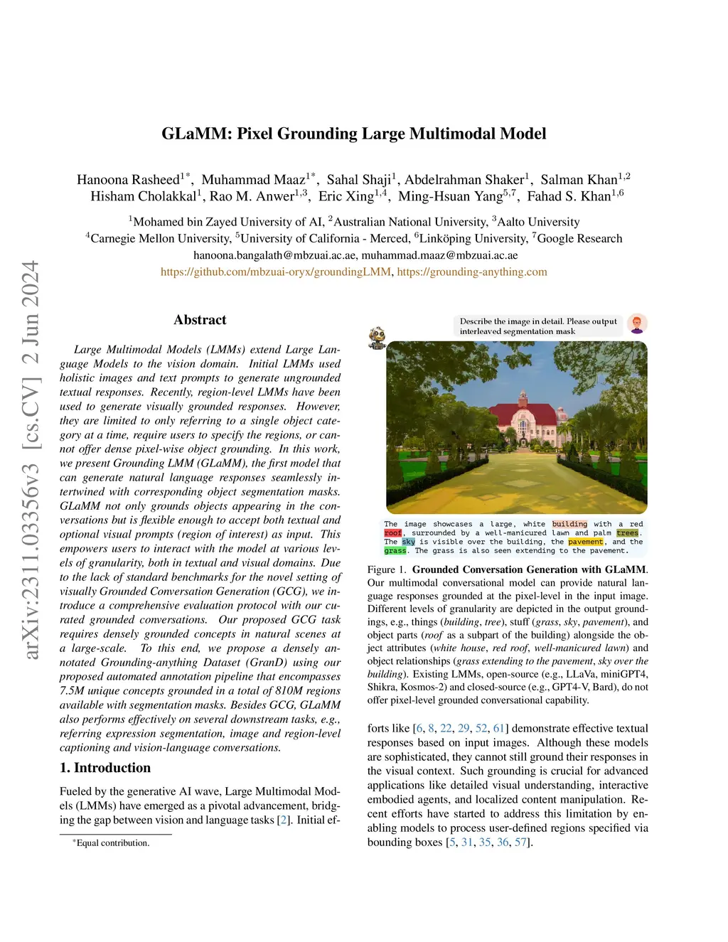 GLaMM: Pixel Grounding Large Multimodal Model