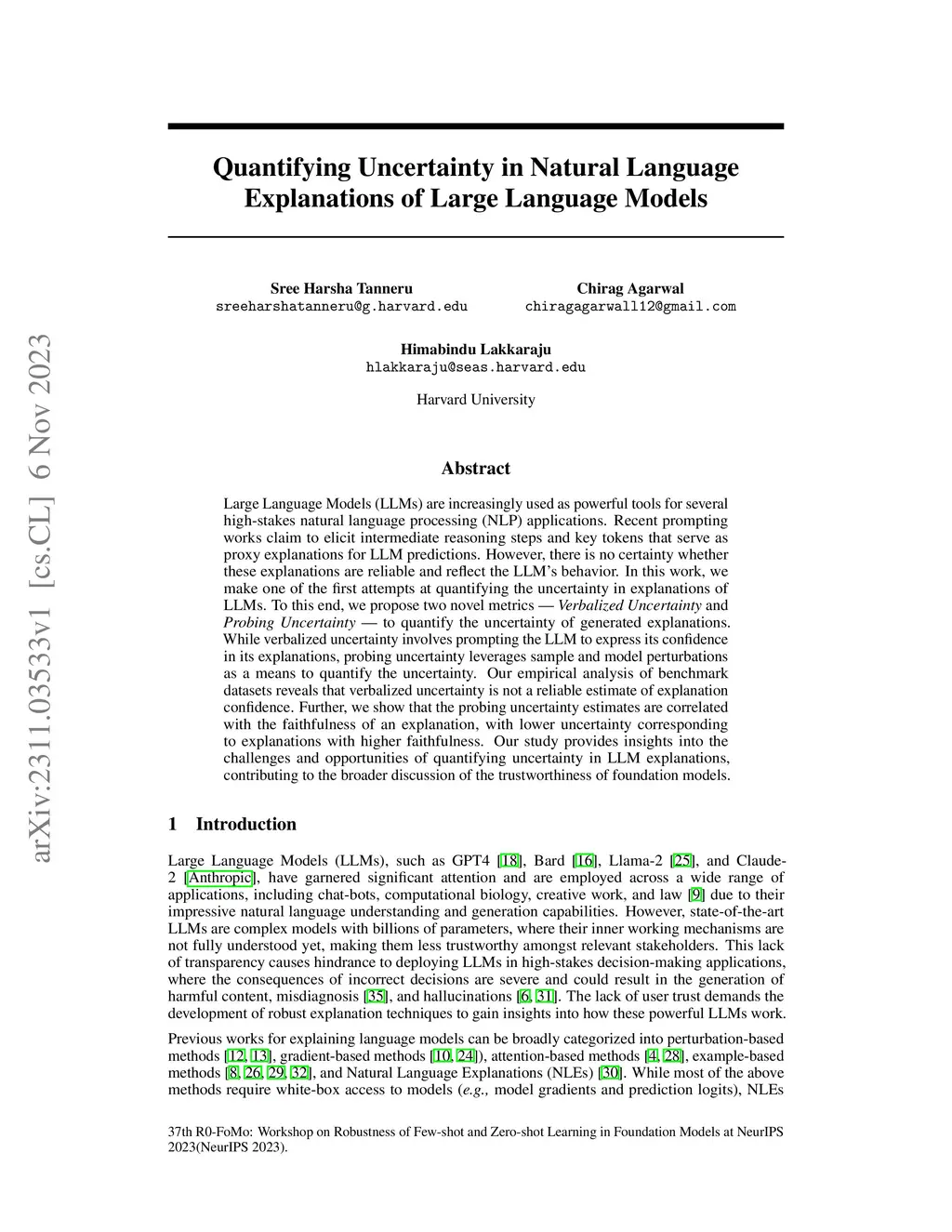 Quantifying Uncertainty in Natural Language Explanations of Large