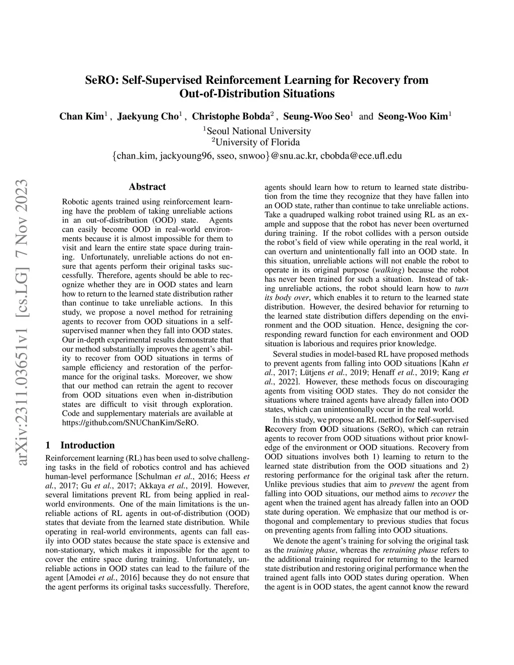 SeRO: Self-Supervised Reinforcement Learning for Recovery from