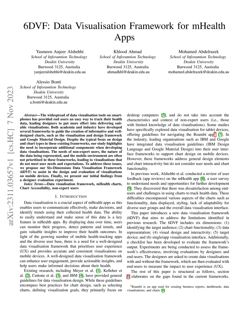 6DVF: Data Visualisation Framework for mHealth Apps