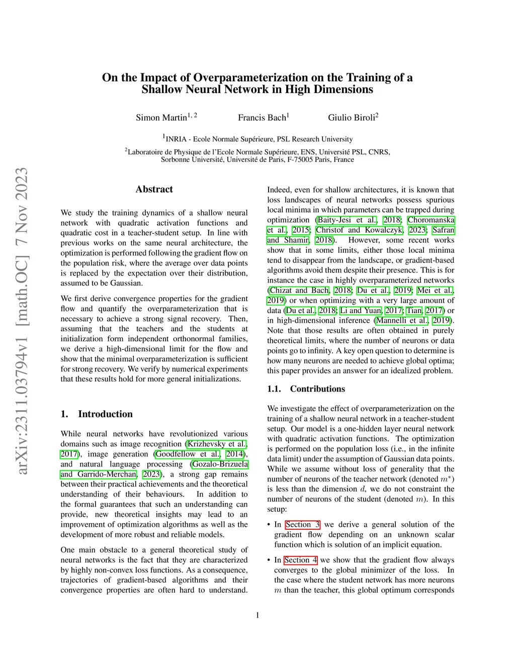 On the Impact of Overparameterization on the Training of a Shallow
