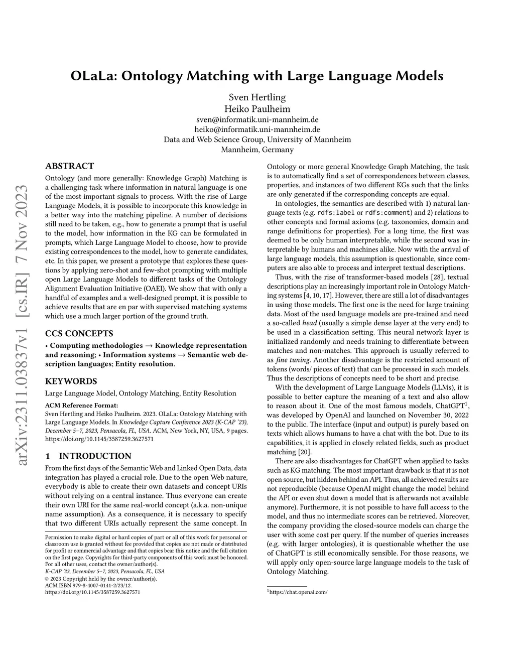 OLaLa: Ontology Matching with Large Language Models