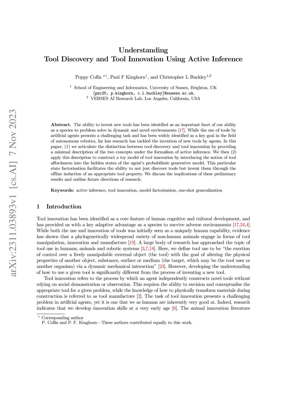 Understanding Tool Discovery and Tool Innovation Using Active Inference