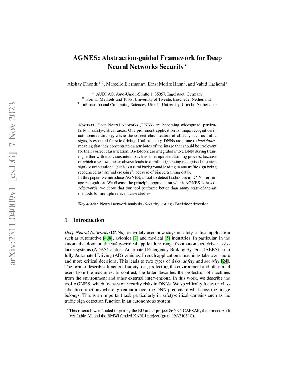 AGNES: Abstraction-guided Framework for Deep Neural Networks Security