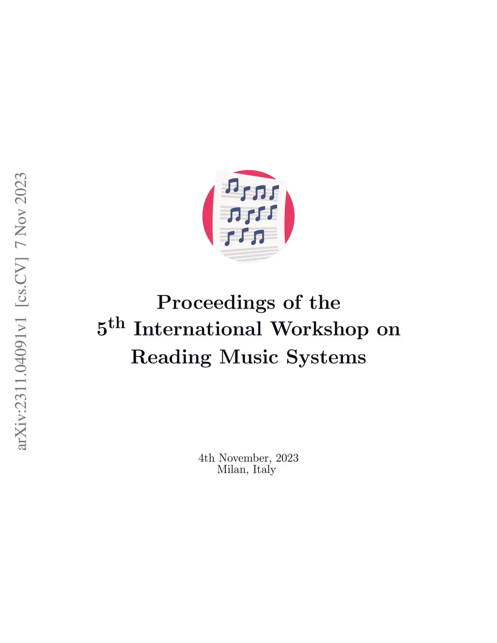 The International Workshop on Reading Music Systems (WoRMS) is a workshop that tries to connect researchers who develop systems for reading music, such as in the field of Optical Music Recognition, with other researchers and practitioners that could benefit from such systems, like librarians or musicologists. The relevant topics of interest for the workshop include, but are not limited to: Music reading systems; Optical music recognition; Datasets and performance evaluation; Image processing on music scores; Writer identification; Authoring, editing, storing and presentation systems for music scores; Multi-modal systems; Novel input-methods for music to produce written music; Web-based Music Information Retrieval services; Applications and projects; Use-cases related to written music. These are the proceedings of the 5th International Workshop on Reading Music Systems, held in Milan, Italy on Nov. 4th 2023.