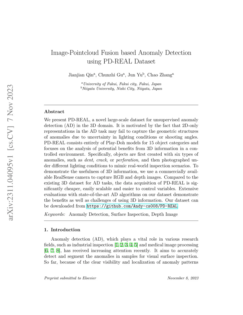 Image-Pointcloud Fusion based Anomaly Detection using PD-REAL Dataset