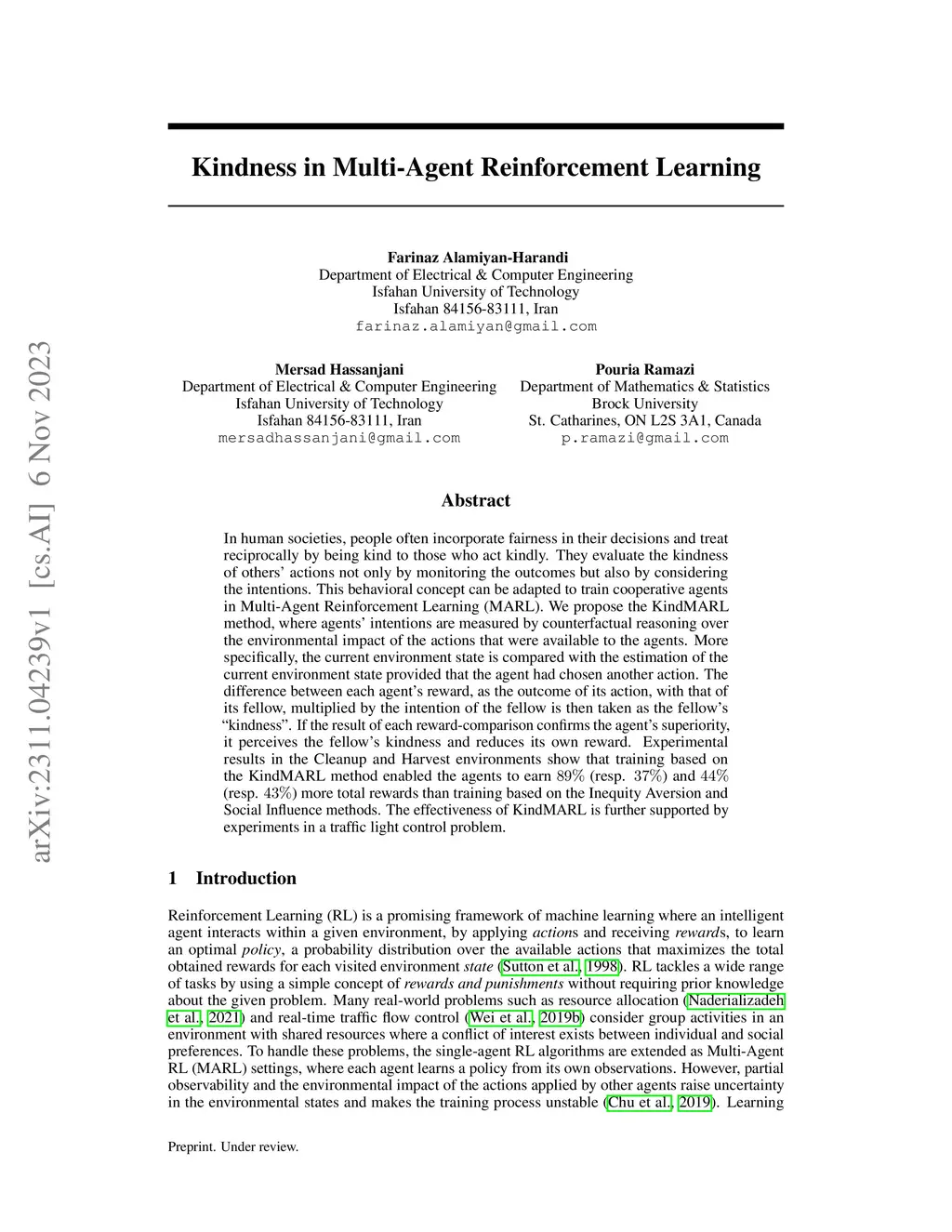 Kindness in Multi-Agent Reinforcement Learning