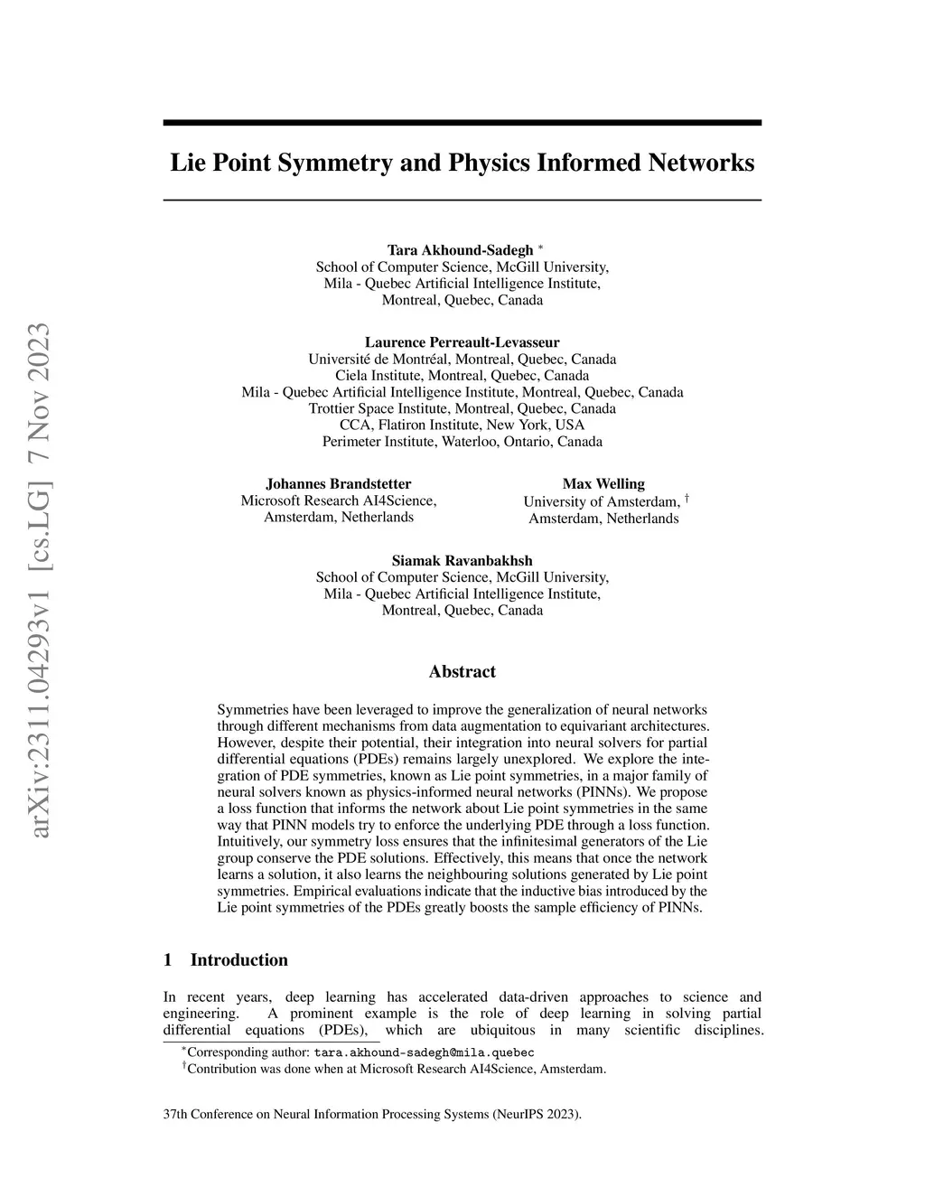 Lie Point Symmetry and Physics Informed Networks