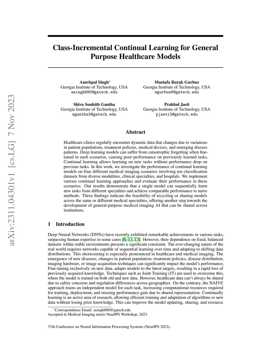 Class-Incremental Continual Learning for General Purpose Healthcare