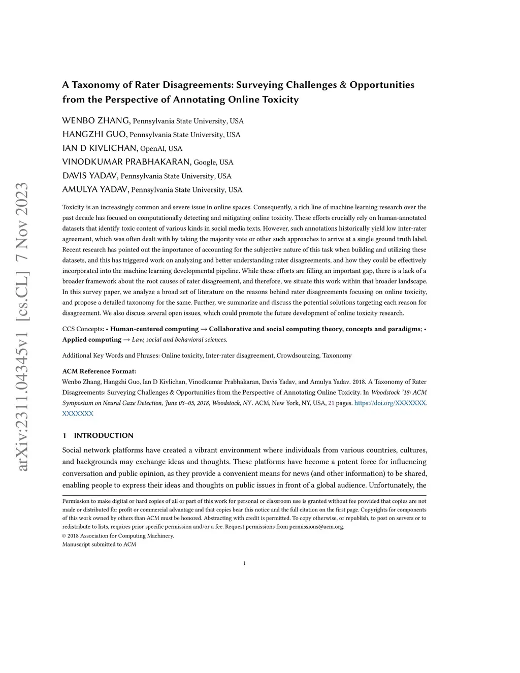 Toxicity is an increasingly common and severe issue in online spaces. Consequently, a rich line of machine learning research over the past decade has focused on computationally detecting and mitigating online toxicity. These efforts crucially rely on human-annotated datasets that identify toxic content of various kinds in social media texts. However, such annotations historically yield low inter-rater agreement, which was often dealt with by taking the majority vote or other such approaches to arrive at a single ground truth label. Recent research has pointed out the importance of accounting for the subjective nature of this task when building and utilizing these datasets, and this has triggered work on analyzing and better understanding rater disagreements, and how they could be effectively incorporated into the machine learning developmental pipeline. While these efforts are filling an important gap, there is a lack of a broader framework about the root causes of rater disagreement, and therefore, we situate this work within that broader landscape. In this survey paper, we analyze a broad set of literature on the reasons behind rater disagreements focusing on online toxicity, and propose a detailed taxonomy for the same. Further, we summarize and discuss the potential solutions targeting each reason for disagreement. We also discuss several open issues, which could promote the future development of online toxicity research.