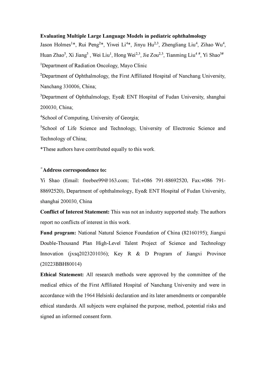 Evaluating multiple large language models in pediatric ophthalmology