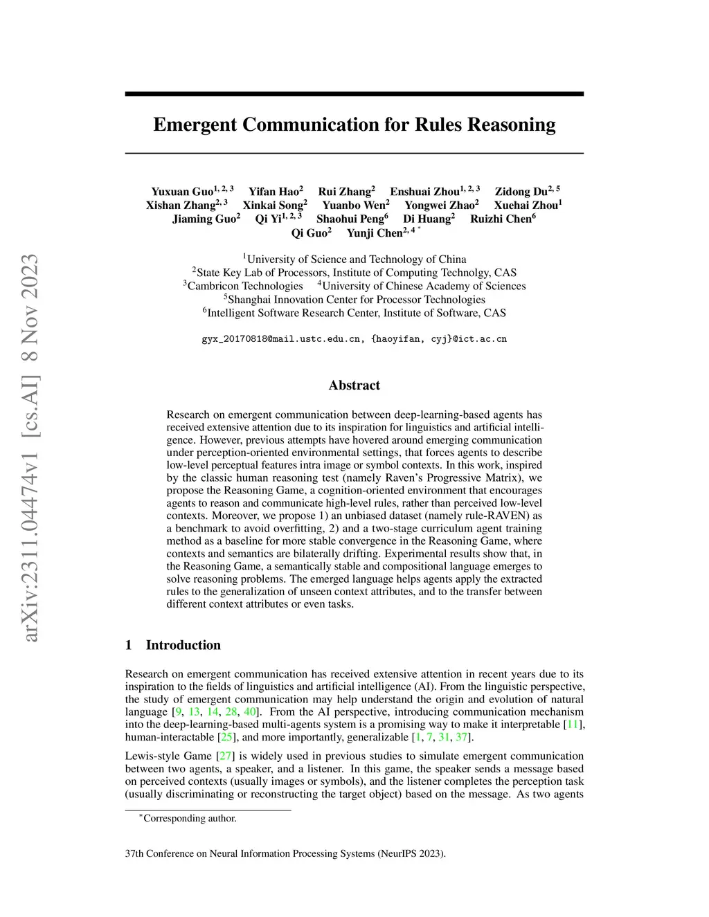 Research on emergent communication between deep-learning-based agents has received extensive attention due to its inspiration for linguistics and artificial intelligence. However, previous attempts have hovered around emerging communication under perception-oriented environmental settings, that forces agents to describe low-level perceptual features intra image or symbol contexts. In this work, inspired by the classic human reasoning test (namely Raven's Progressive Matrix), we propose the Reasoning Game, a cognition-oriented environment that encourages agents to reason and communicate high-level rules, rather than perceived low-level contexts. Moreover, we propose 1) an unbiased dataset (namely rule-RAVEN) as a benchmark to avoid overfitting, 2) and a two-stage curriculum agent training method as a baseline for more stable convergence in the Reasoning Game, where contexts and semantics are bilaterally drifting. Experimental results show that, in the Reasoning Game, a semantically stable and compositional language emerges to solve reasoning problems. The emerged language helps agents apply the extracted rules to the generalization of unseen context attributes, and to the transfer between different context attributes or even tasks.