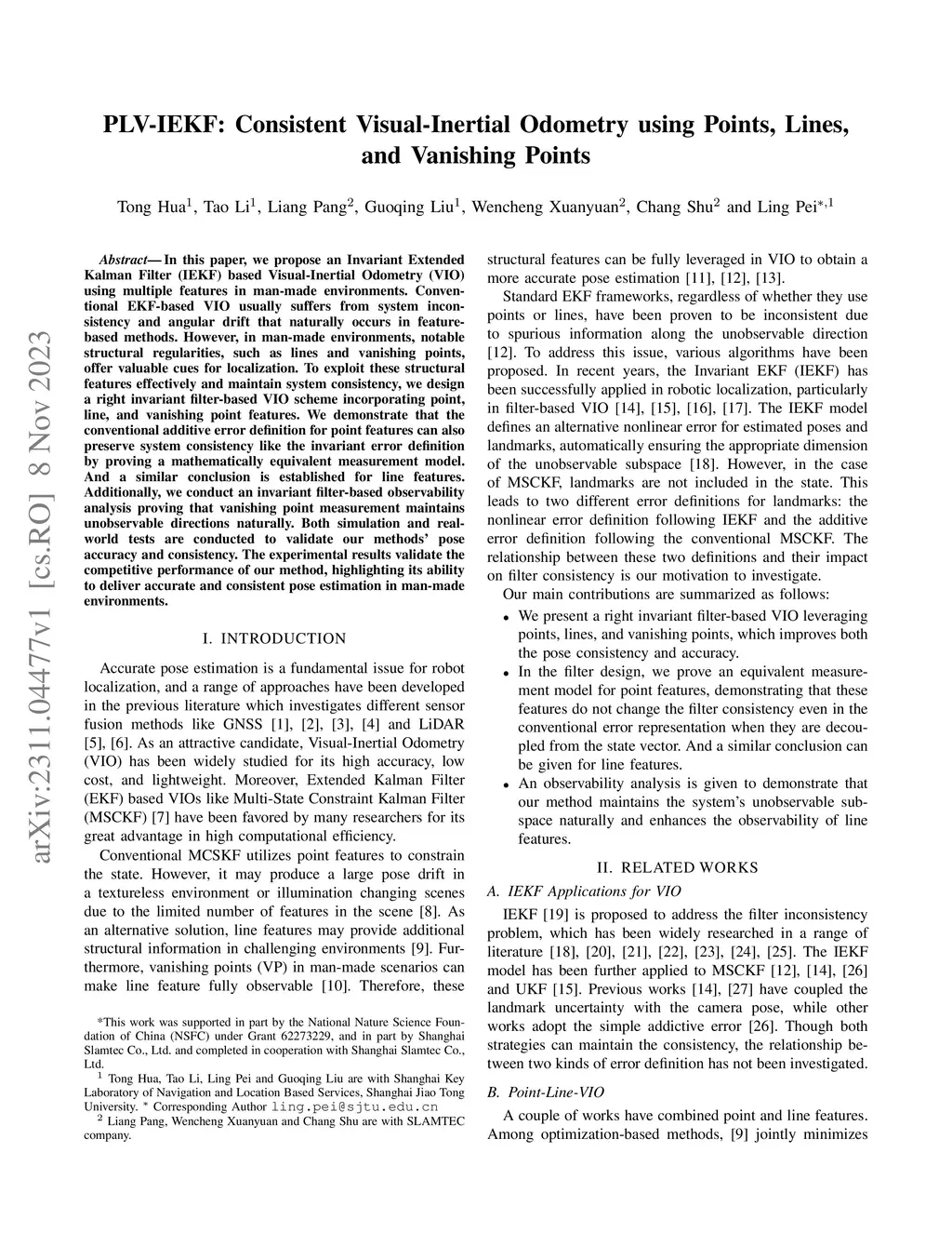 PLV-IEKF: Consistent Visual-Inertial Odometry using Points, Lines, and