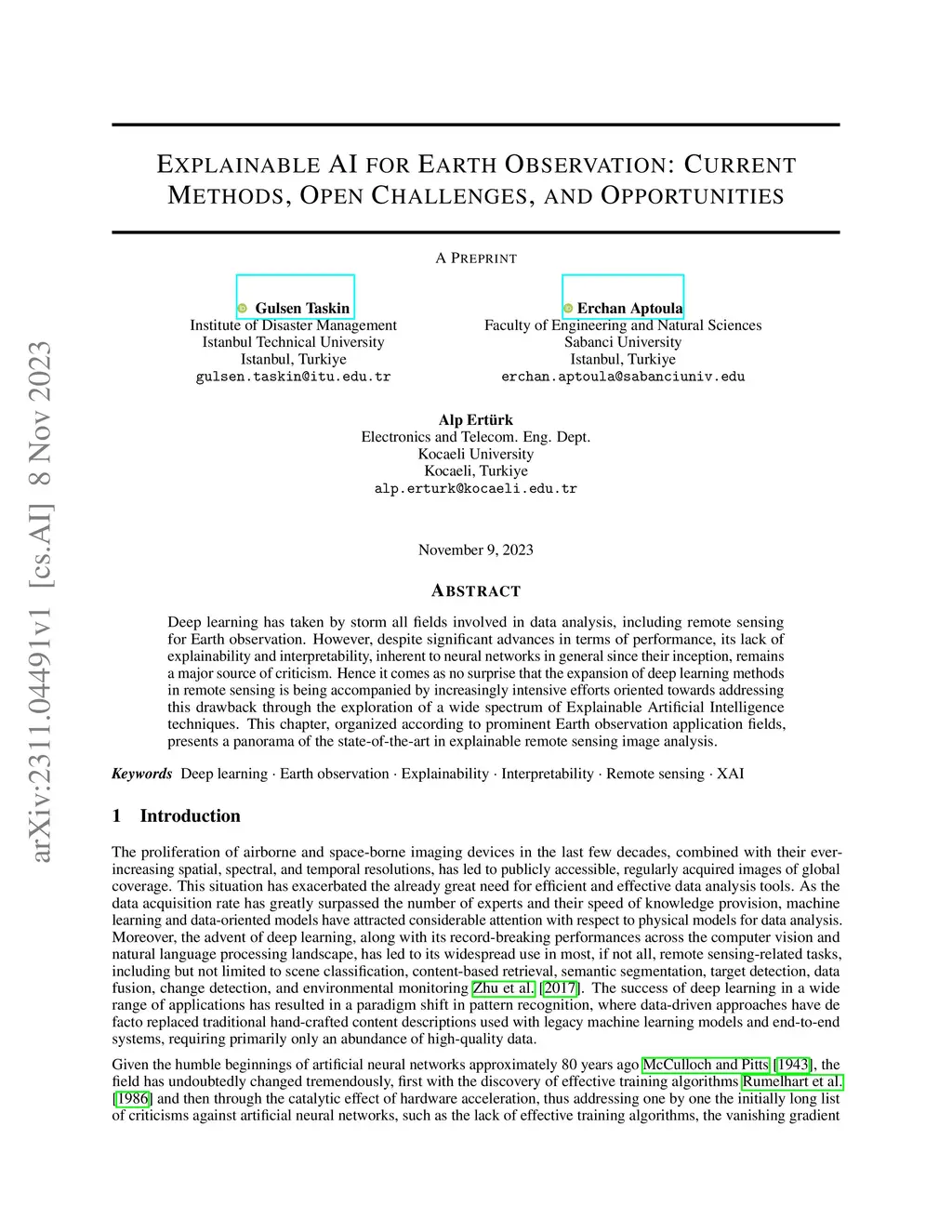 Deep learning has taken by storm all fields involved in data analysis, including remote sensing for Earth observation. However, despite significant advances in terms of performance, its lack of explainability and interpretability, inherent to neural networks in general since their inception, remains a major source of criticism. Hence it comes as no surprise that the expansion of deep learning methods in remote sensing is being accompanied by increasingly intensive efforts oriented towards addressing this drawback through the exploration of a wide spectrum of Explainable Artificial Intelligence techniques. This chapter, organized according to prominent Earth observation application fields, presents a panorama of the state-of-the-art in explainable remote sensing image analysis.