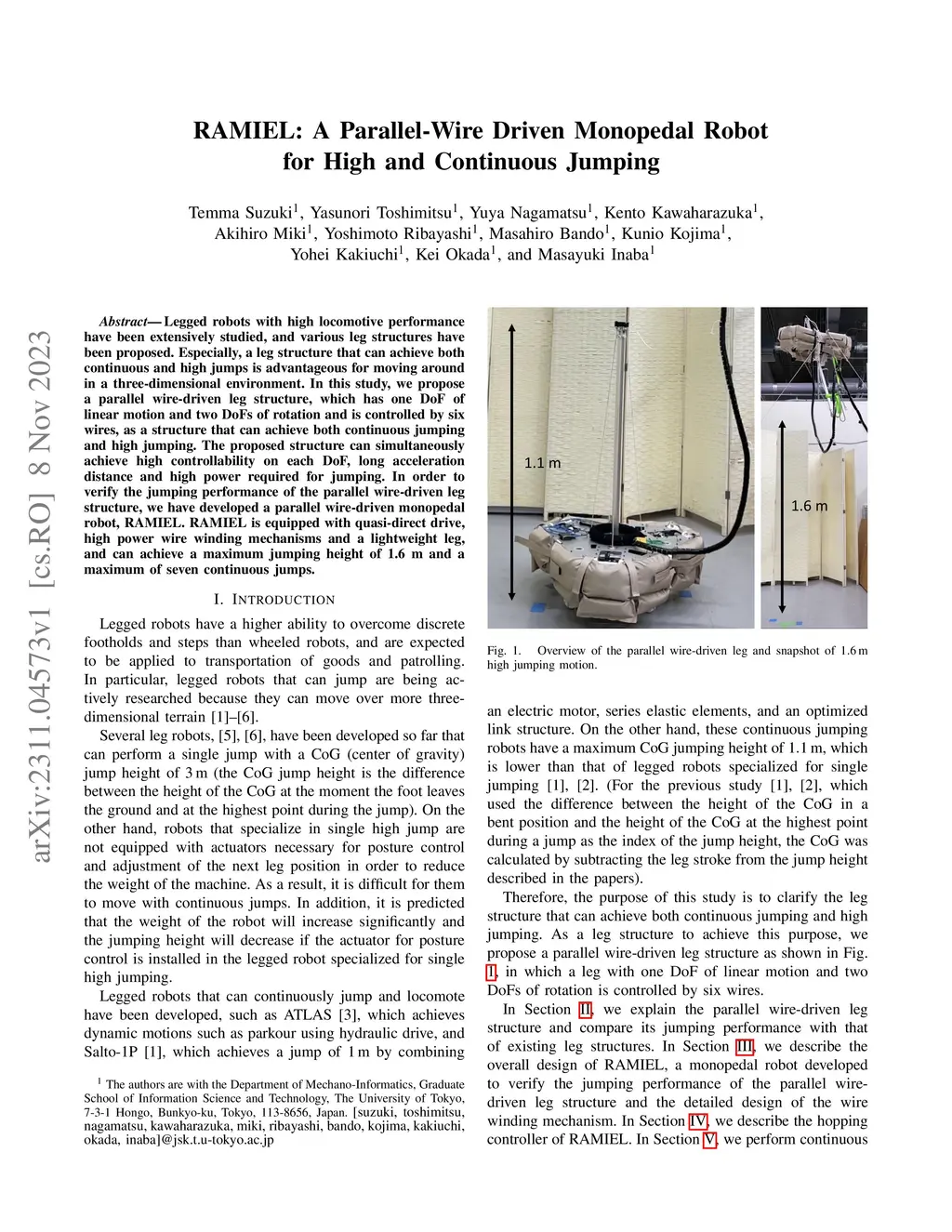 RAMIEL: A Parallel-Wire Driven Monopedal Robot for High and Continuous