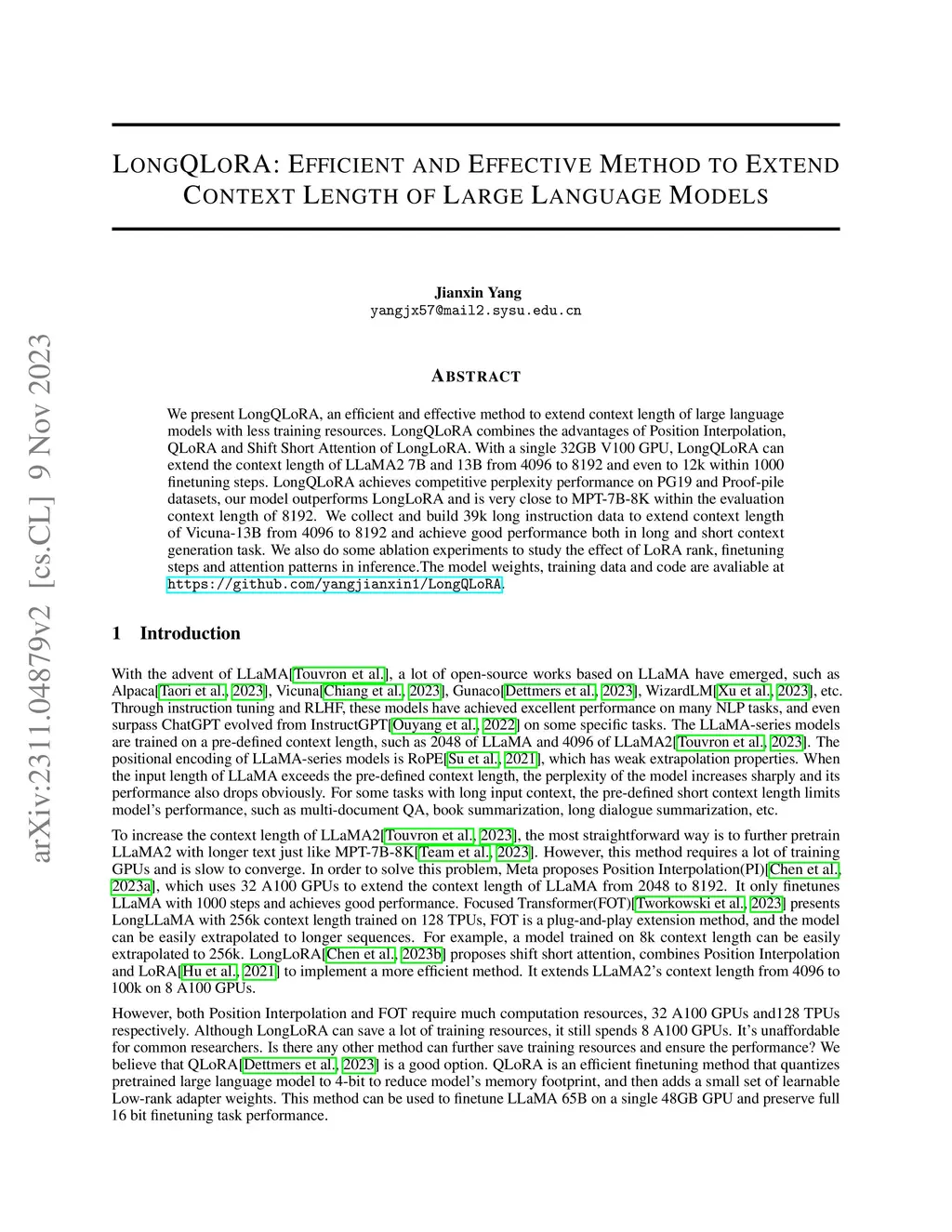 LongQLoRA: Efficient and Effective Method to Extend Context Length of