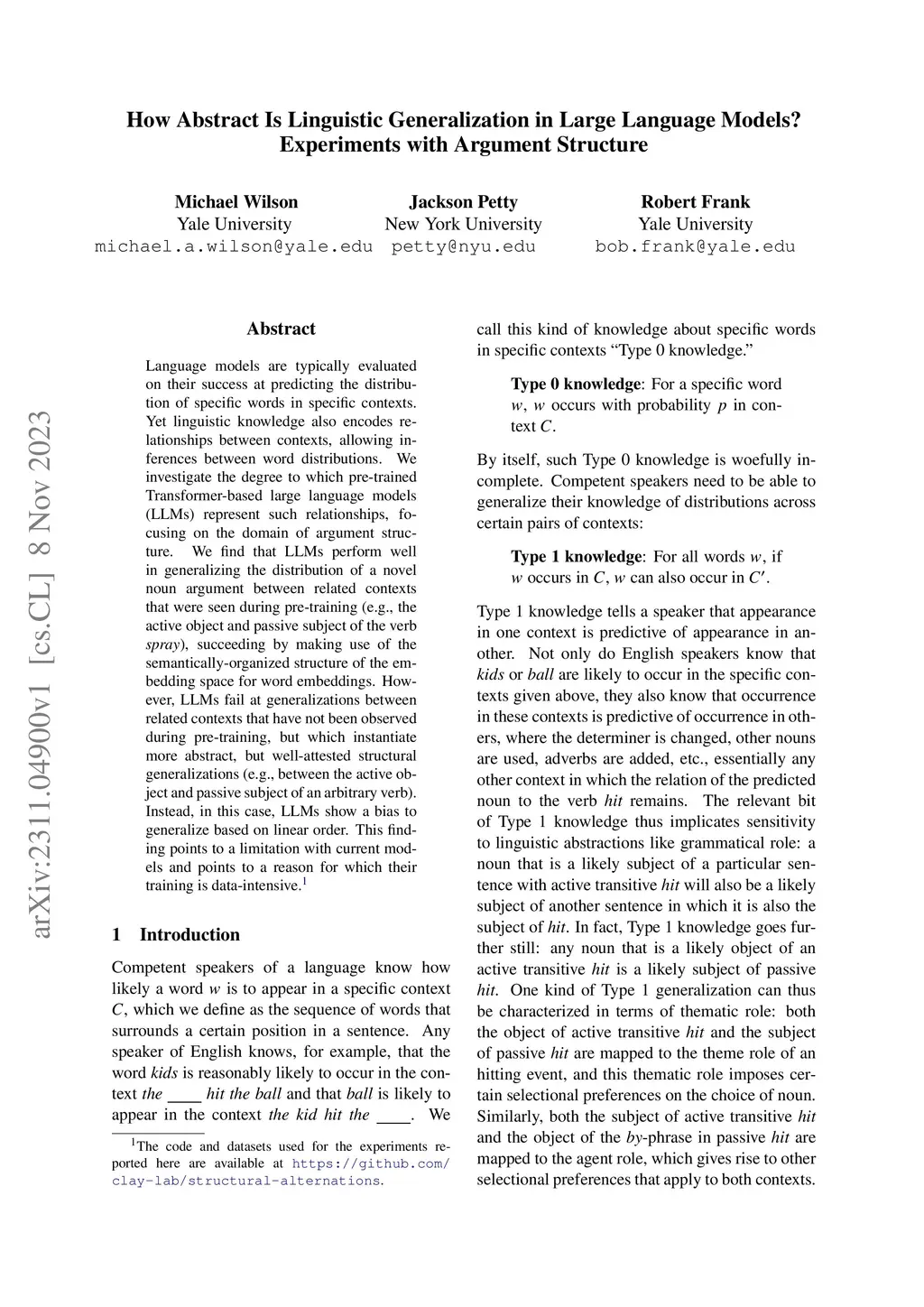 Experiments with Argument Structure