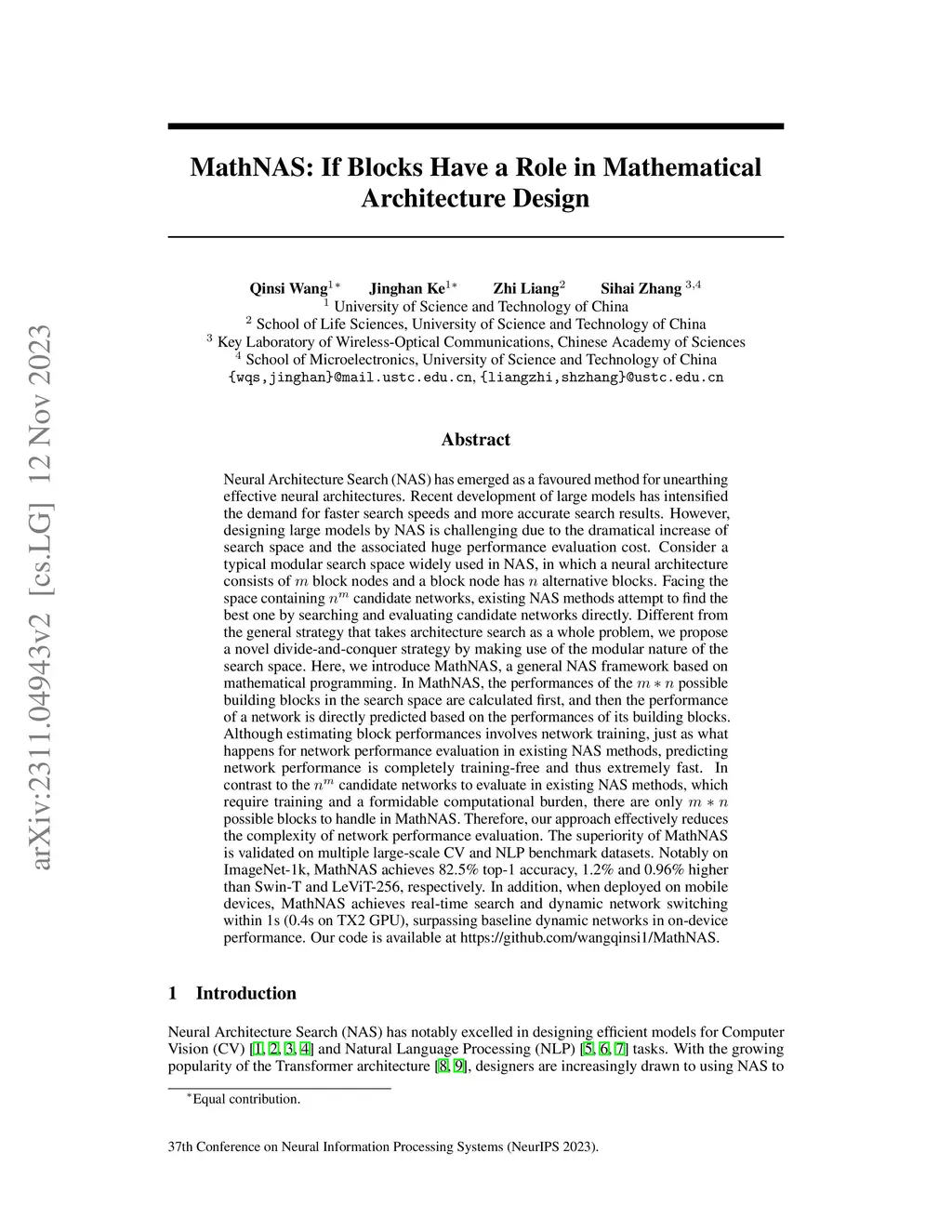 MathNAS: If Blocks Have a Role in Mathematical Architecture Design