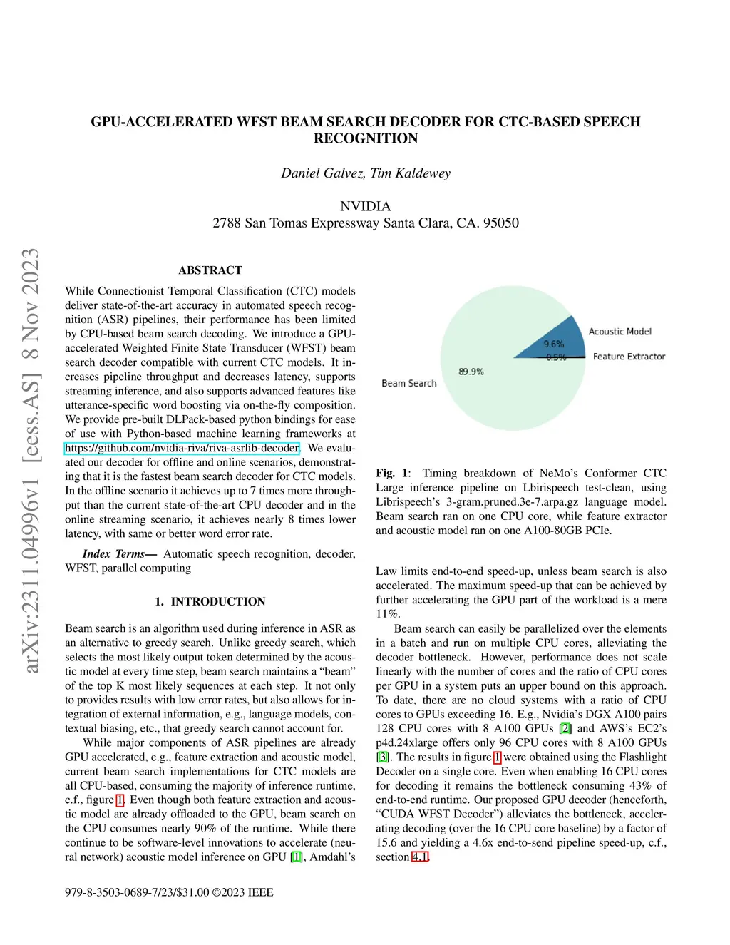 GPU-Accelerated WFST Beam Search Decoder for CTC-based Speech