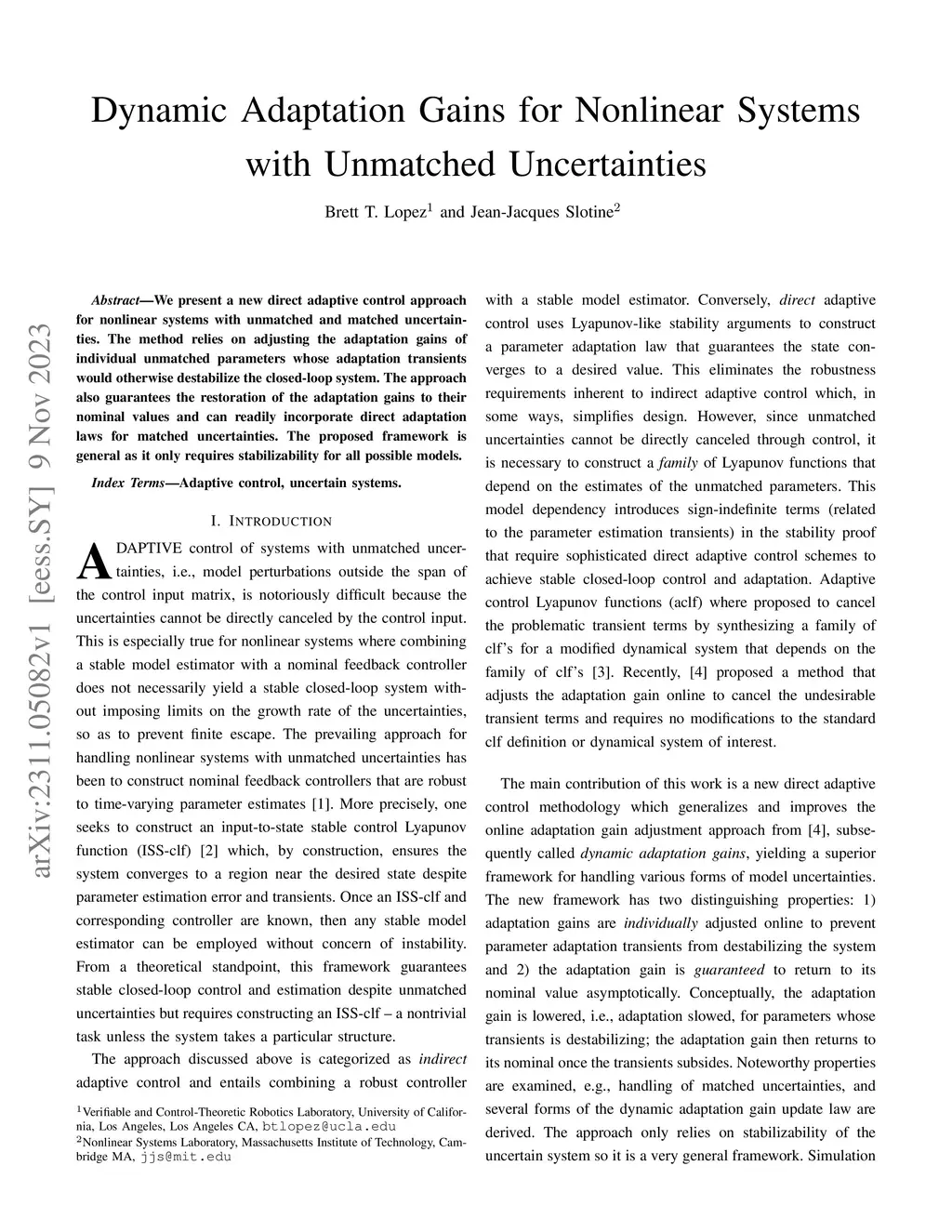 Dynamic Adaptation Gains for Nonlinear Systems with Unmatched