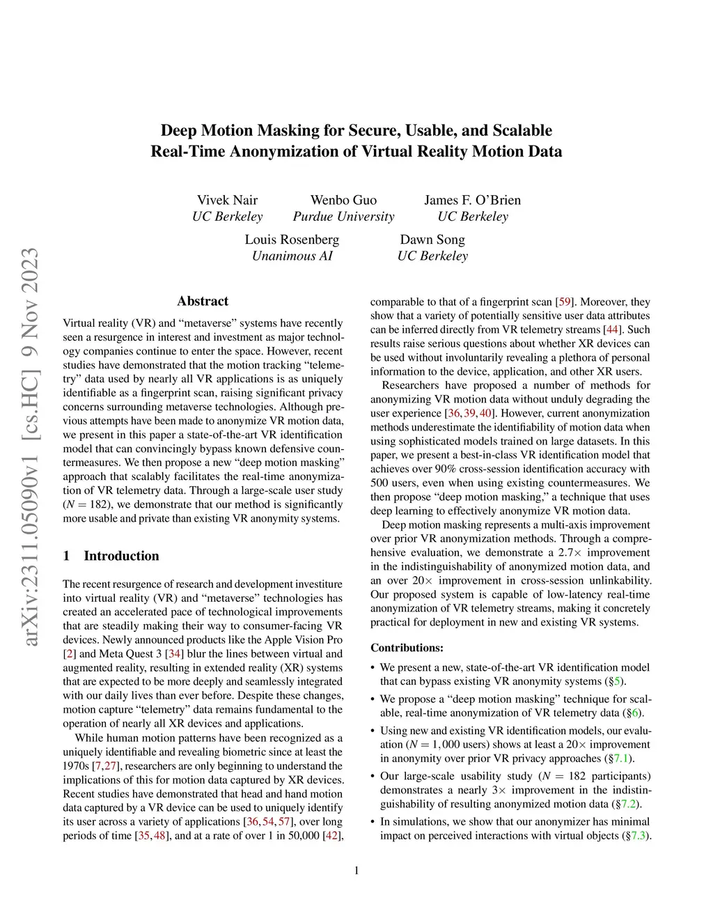 Deep Motion Masking for Secure, Usable, and Scalable Real-Time