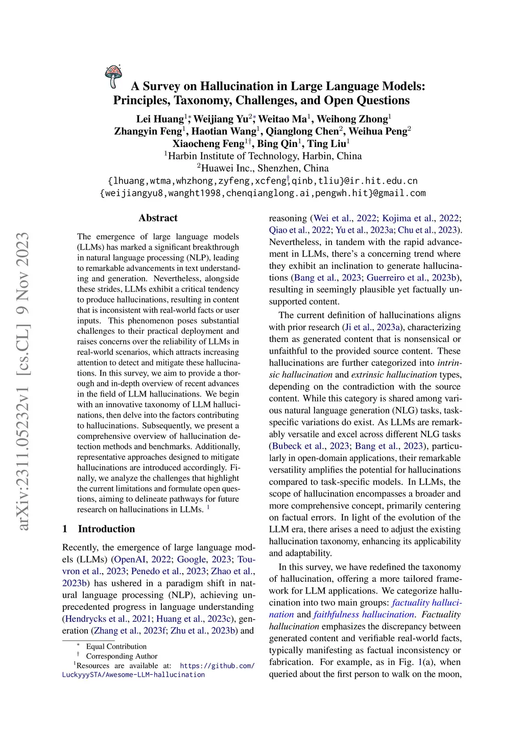 A Survey on Hallucination in Large Language Models: Principles,