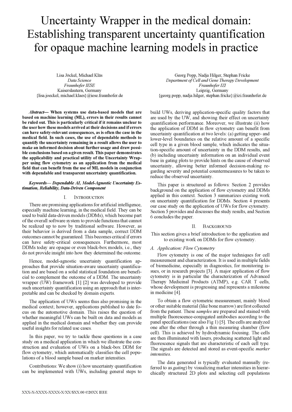 When systems use data-based models that are based on machine learning (ML), errors in their results cannot be ruled out. This is particularly critical if it remains unclear to the user how these models arrived at their decisions and if errors can have safety-relevant consequences, as is often the case in the medical field. In such cases, the use of dependable methods to quantify the uncertainty remaining in a result allows the user to make an informed decision about further usage and draw possible conclusions based on a given result. This paper demonstrates the applicability and practical utility of the Uncertainty Wrapper using flow cytometry as an application from the medical field that can benefit from the use of ML models in conjunction with dependable and transparent uncertainty quantification.