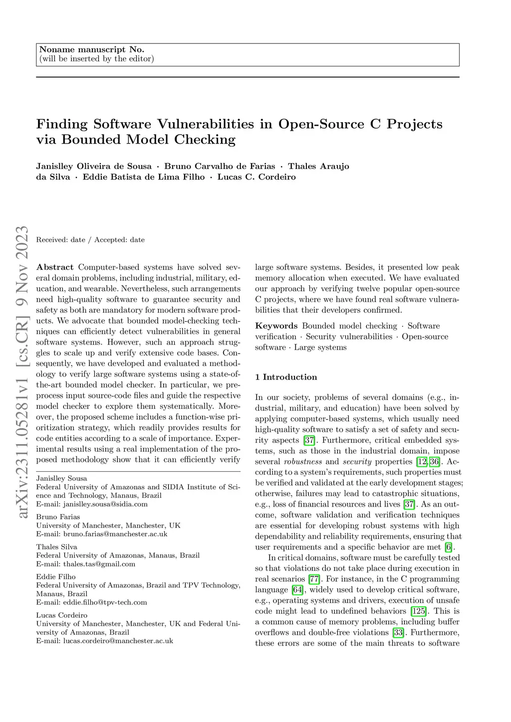 Computer-based systems have solved several domain problems, including industrial, military, education, and wearable. Nevertheless, such arrangements need high-quality software to guarantee security and safety as both are mandatory for modern software products. We advocate that bounded model-checking techniques can efficiently detect vulnerabilities in general software systems. However, such an approach struggles to scale up and verify extensive code bases. Consequently, we have developed and evaluated a methodology to verify large software systems using a state-of-the-art bounded model checker. In particular, we pre-process input source-code files and guide the respective model checker to explore them systematically. Moreover, the proposed scheme includes a function-wise prioritization strategy, which readily provides results for code entities according to a scale of importance. Experimental results using a real implementation of the proposed methodology show that it can efficiently verify large software systems. Besides, it presented low peak memory allocation when executed. We have evaluated our approach by verifying twelve popular open-source C projects, where we have found real software vulnerabilities that their developers confirmed.