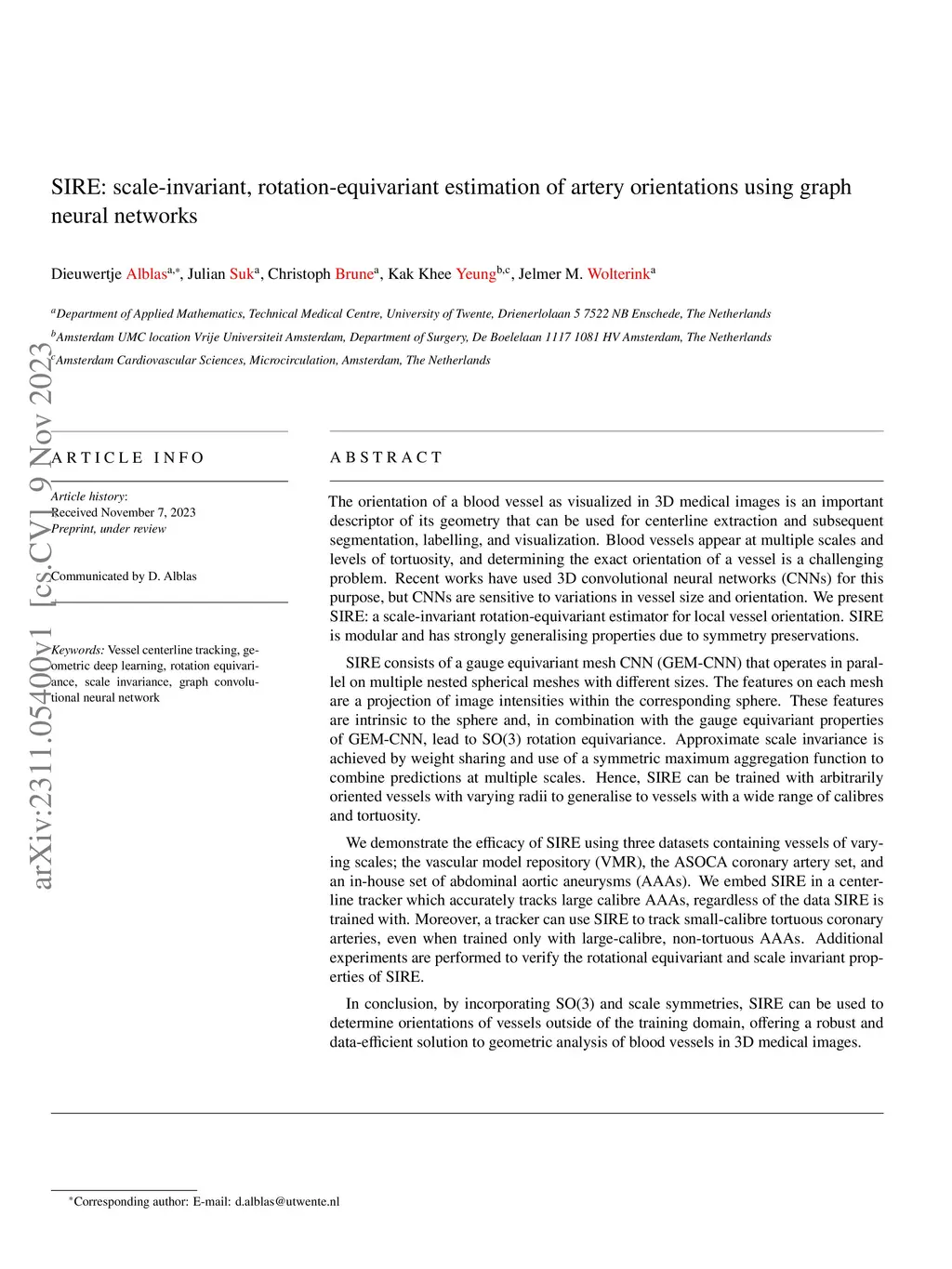 SIRE: scale-invariant, rotation-equivariant estimation of artery