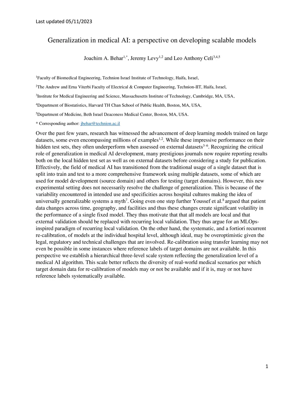 Generalization in medical AI: a perspective on developing scalable models