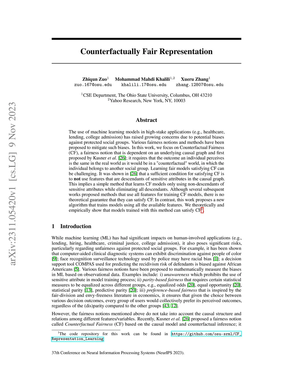 Counterfactually Fair Representation