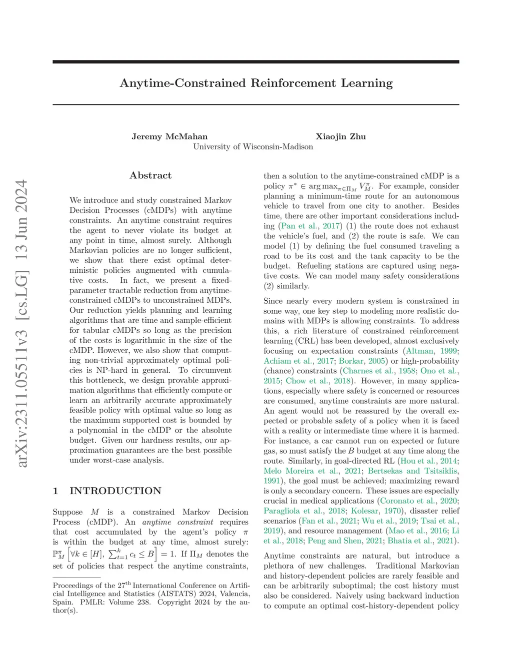 We introduce and study constrained Markov Decision Processes (cMDPs) with anytime constraints. An anytime constraint requires the agent to never violate its budget at any point in time, almost surely. Although Markovian policies are no longer sufficient, we show that there exist optimal deterministic policies augmented with cumulative costs. In fact, we present a fixed-parameter tractable reduction from anytime-constrained cMDPs to unconstrained MDPs. Our reduction yields planning and learning algorithms that are time and sample-efficient for tabular cMDPs so long as the precision of the costs is logarithmic in the size of the cMDP. However, we also show that computing non-trivial approximately optimal policies is NP-hard in general. To circumvent this bottleneck, we design provable approximation algorithms that efficiently compute or learn an arbitrarily accurate approximately feasible policy with optimal value so long as the maximum supported cost is bounded by a polynomial in the cMDP or the absolute budget. Given our hardness results, our approximation guarantees are the best possible under worst-case analysis.